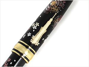 その浅草雷門を蒔絵の手法を使いボールペンに表現しました。