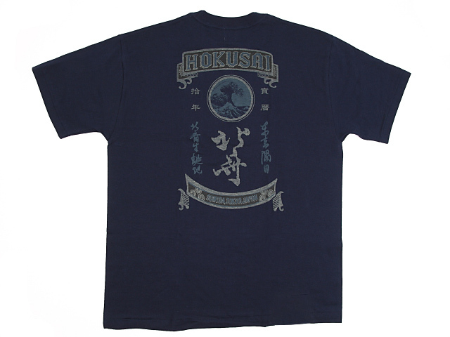 北斎生誕の地である隅田にちなみ、冨嶽三十六景より、「隅田川関谷の里」に描かれた早駆の武士を中央に据えたタグをTシャツの裾に縫い付けております。